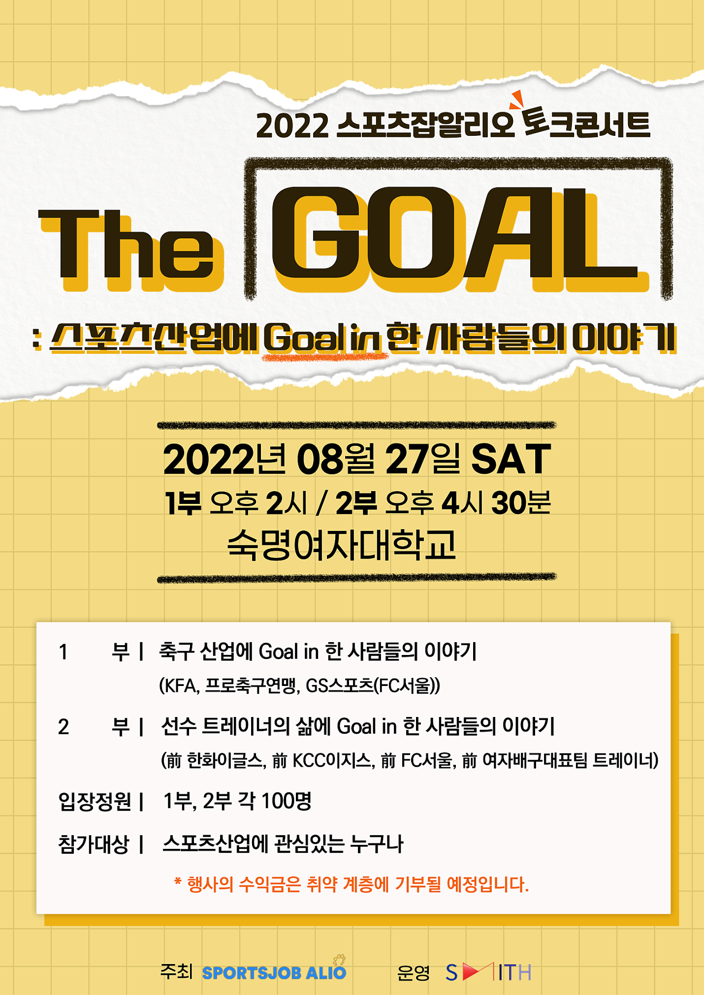 2022.08.112022 스포츠잡알리오 토크콘서트 [The GOAL : 스포츠산업에 Goal in 한 사람들의 이야기]를 개최합니다!